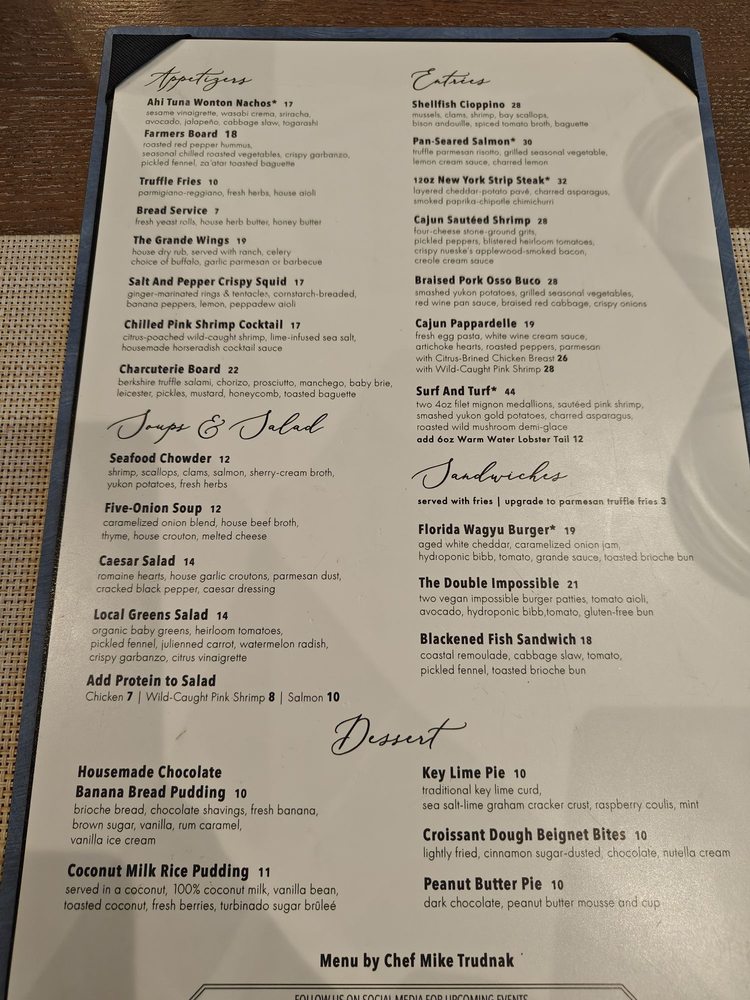 The menu showcases gourmet burgers crafted with top-notch ingredients, complemented by fresh seafood that highlights the coastal charm of Daytona Beach. Every bite is a testament to quality and creativity.